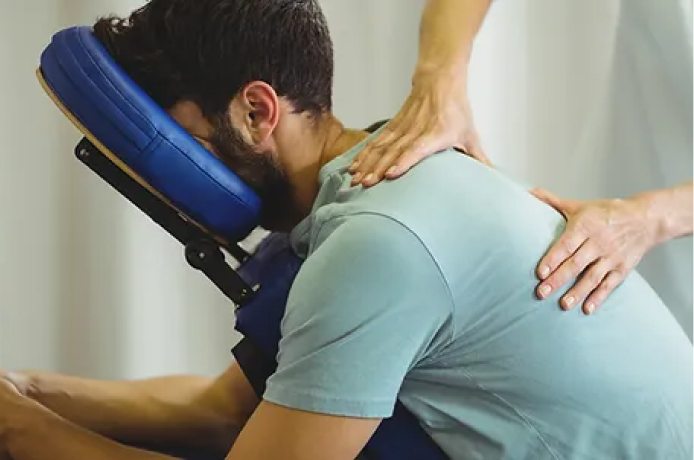 Masaje en silla para quienes no pueden tumbarse.